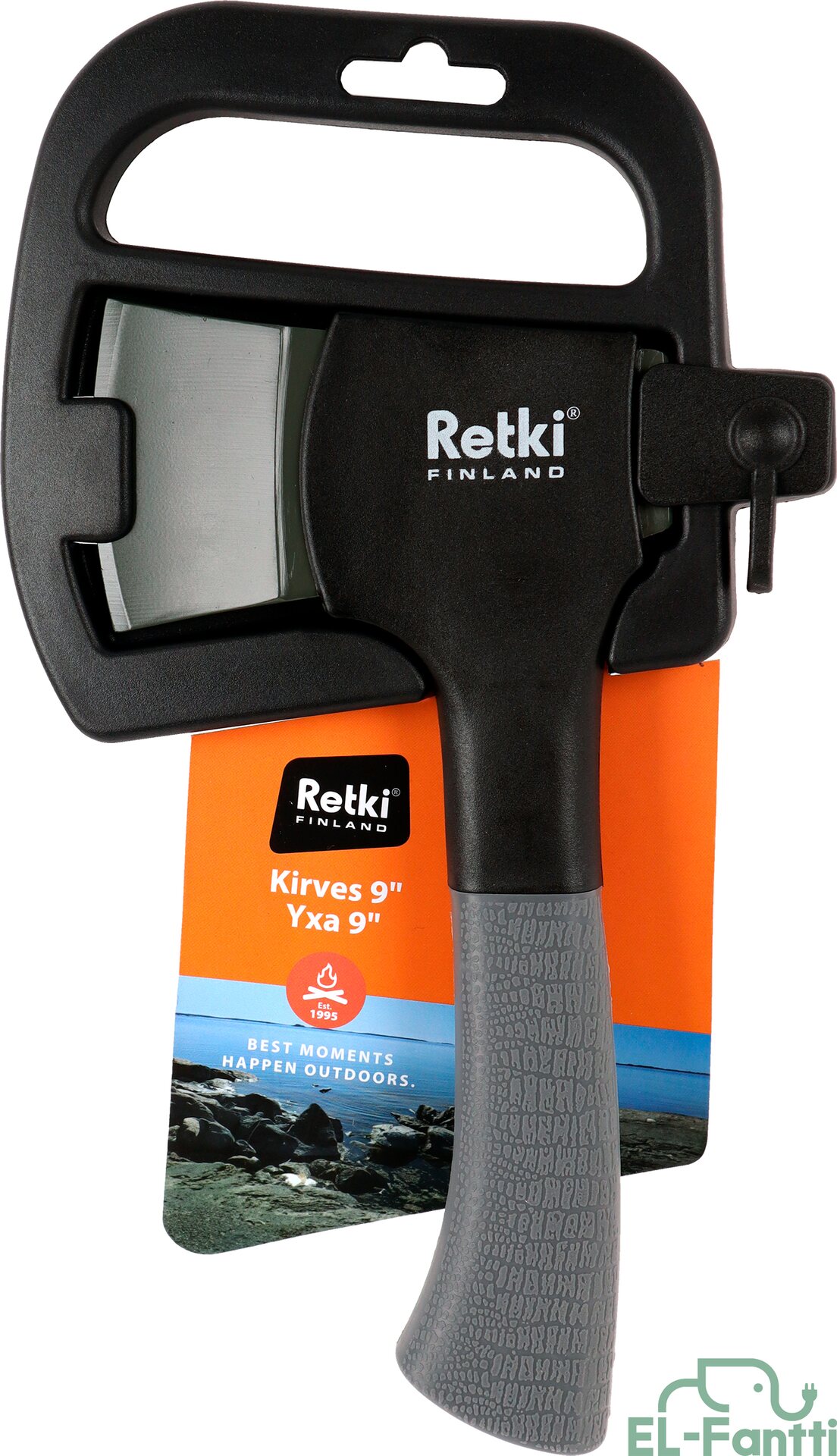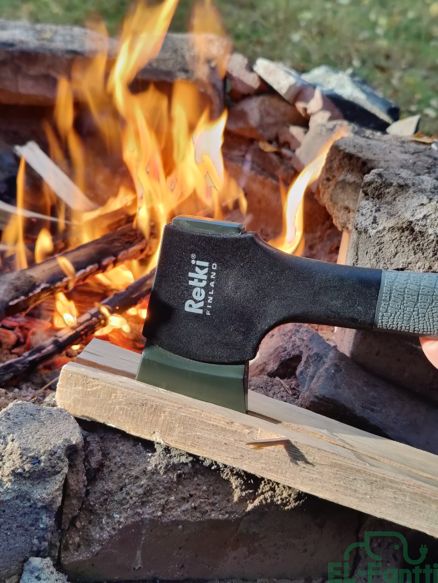 Pienikokoinen retkikirves, pituus 23 cm. Materiaali taottua hiiliterästä, teflon-pinnoite. Kirves painaa 530 grammaa, mukana teräsuoja. Tukeva ja luistamaton kädensija.