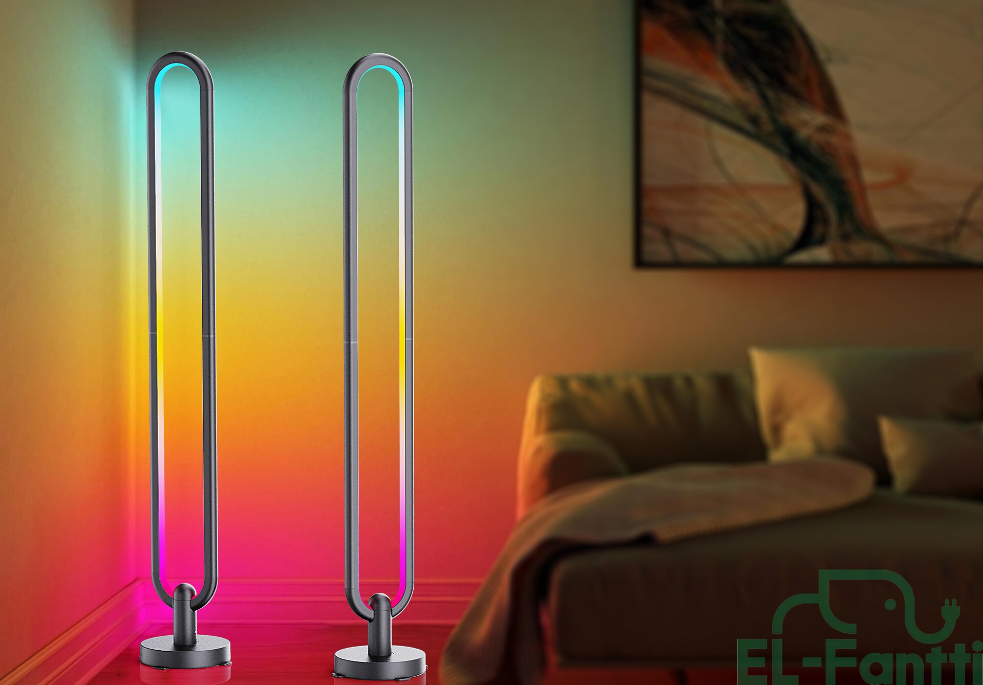 Monipuolinen ja näyttävä valaisin kaukosäätimellä tuo tunnelmaa ja tehoa tilaan. Tämä 104,5 cm korkea design-valaisin tarjoaa runsaasti erilaisia valotehosteita ja musiikkitoiminnon. Valaisimen kaukosäädinohjaus mahdollistaa valaistuksen säätämisen vaivattomasti tilanteen mukaan – rauhallisesta tunnelmavalosta vauhdikkaisiin valoefekteihin. Valaisimessa käytetään erillisiä IC-ohjattuja LED-piirejä, joiden ansiosta valoefektit, kuten juoksevat värit ja dynaamiset tehosteet, ovat mahdollisia – toisin kuin perinteisissä RGB-nauhoissa, joissa koko nauha vaihtaa väriä samanaikaisesti. Tekniset tiedot: - Käyttöjännite: 12 V - Teho: 20 W - Valovirta: 1400 lm - Värilämpötila: 3000 K - Korkeus: 104,5 cm - Leveys 130 mm - LED-valo 2 m - Johdon pituus 1,5 m - Ohjaus: Kaukosäädin - Valotehosteet: Useita väri- ja tehovaihtoehtoja, musiikkisynkronointi - Materiaalit: Alumiini, ABS-muovi, silikoni Takuu 36 kk