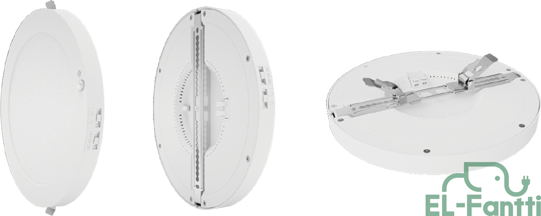 6W helposti asennettava LED-paneelivalaisin sisustukseen ja yleisvalaistukseen. Pinta-/Puoliuppoon asennettava, asennusreiän halkaisija: Ø55-80mm sisäänrakennettu liitäntälaite, kehyksen väri valkoinen. 230V/50Hz, 6W, 400lm, 3000K, himmennettävä, IP20/IP43, Ø126mm.