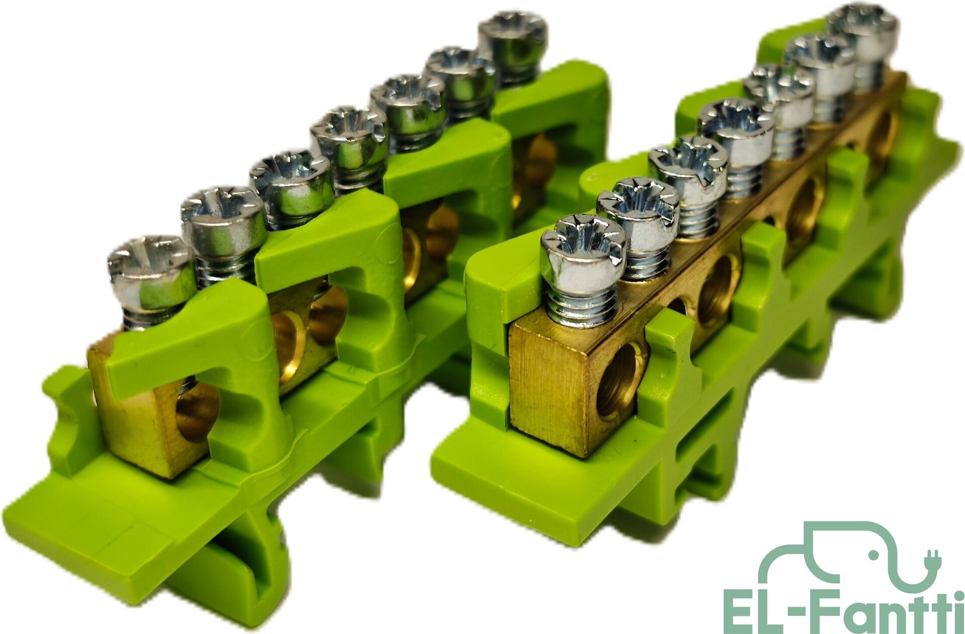 N-kisko ruuviliittimillä. DIN-kisko asennus.