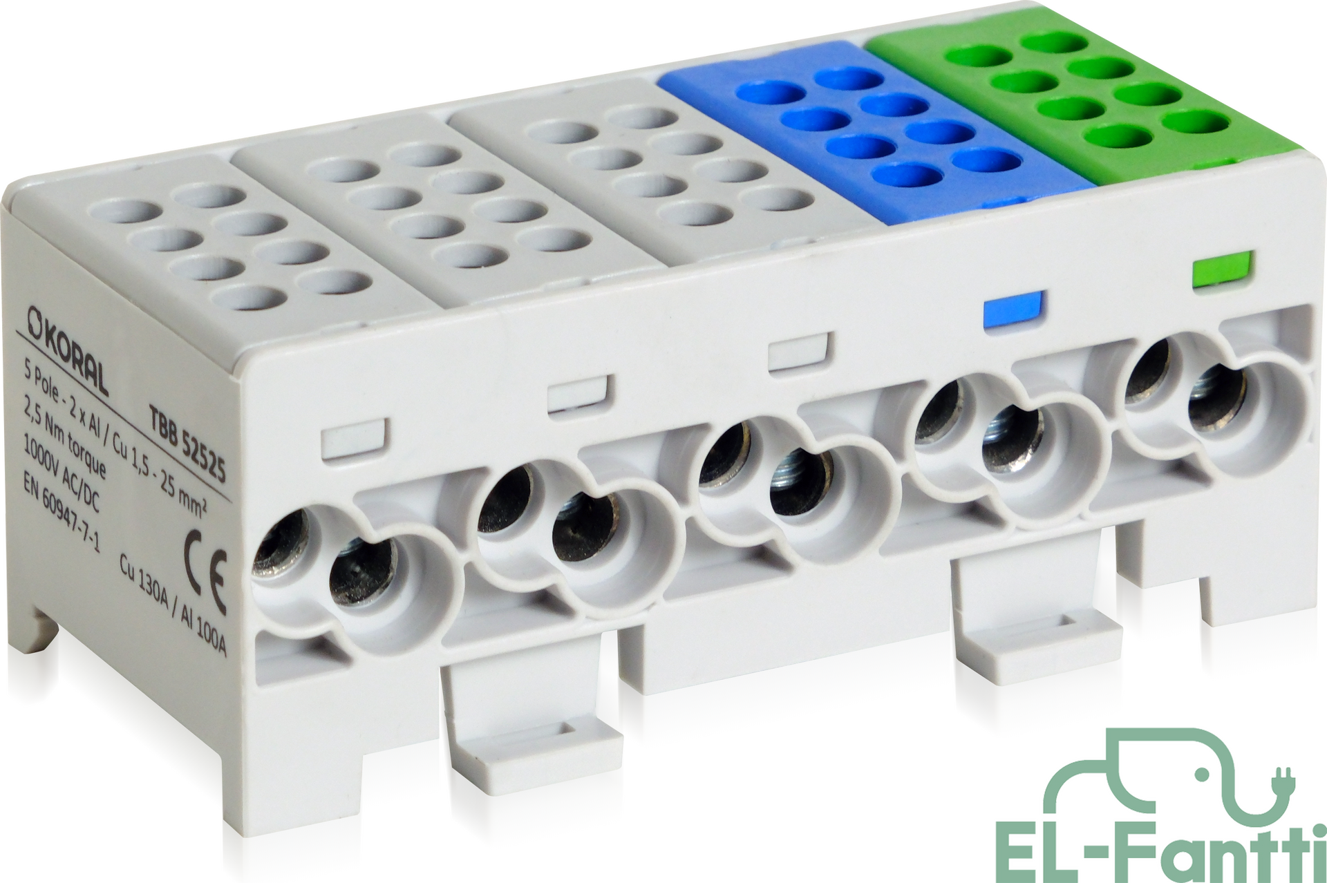 Liittimet: 5 x 2 x 1,5 mm² - 25 mm²