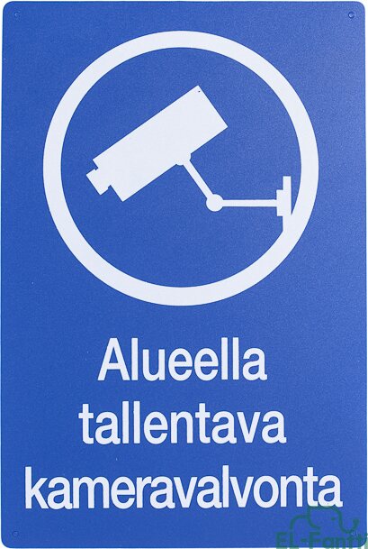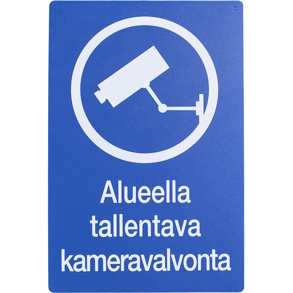 Alueella tallentavasta kameravalvonnasta kertova varoitusmerkki.