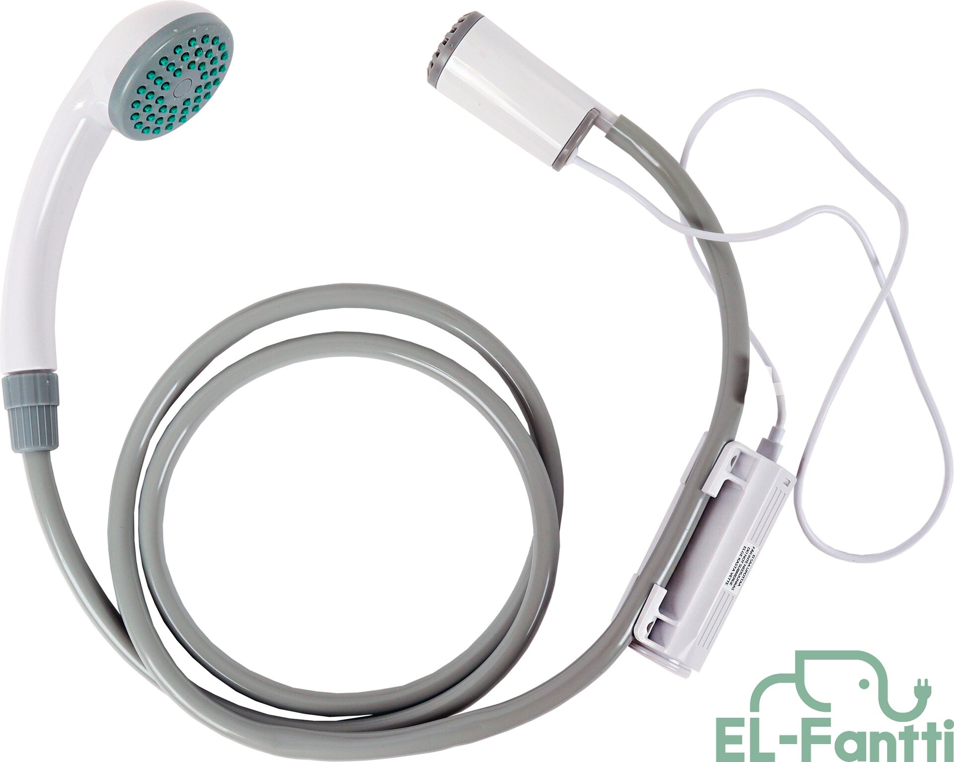 Ladattava mökkisuihku 2000mAh LFP litium-akulla. IPX8. Akkupakkaus irrotettavissa latauksen ajaksi. Pieni pumppu, mahtuu kapeampaankin vesiastiaan. mökkisuihkun teknologia minimoi veden kulutuksen, joten voit säästää huomattavasti vettä perinteisiin pesutapoihin verrattuna. Voit käyttää suihkua missä tahansa ilman tarvetta kiinteään vesijohtoon tai sähköverkkoon. Lataa akut kotona ja ota suihku mukaasi mökille, telttaretkelle tai vaikka veneelle.