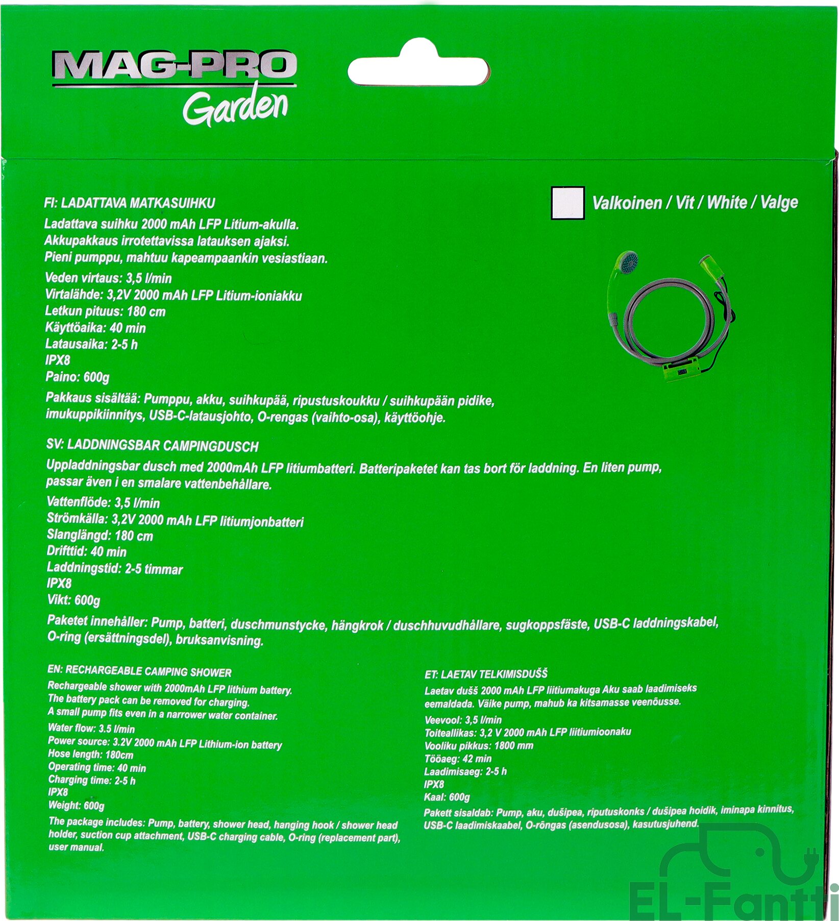 Mag-Pro Garden Matkasuihku ladattava IPX8 valkoinen